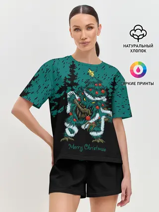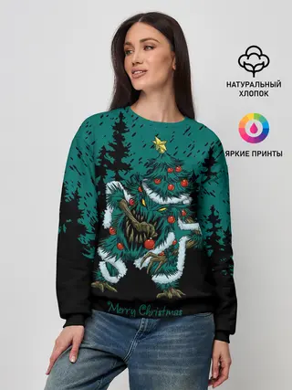 Лонгслив женский. Хлопок / Бесячья ёлка