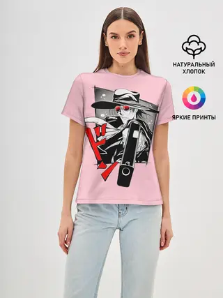 Женская базовая футболка / Алукард на розовом фоне