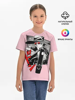 Детская базовая футболка / Алукард на розовом фоне