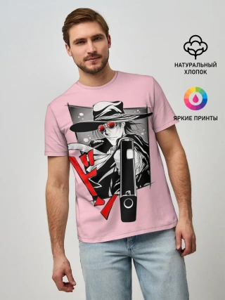 Мужская базовая футболка / Алукард на розовом фоне
