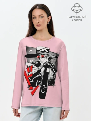 Лонгслив женский. Хлопок / Алукард на розовом фоне
