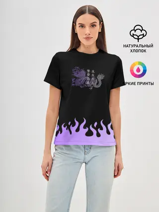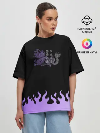 Женская футболка оверсайз / Дракон и огонь