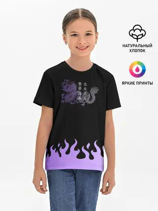 Детская базовая футболка / Дракон и огонь