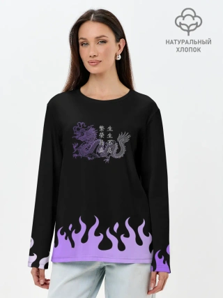 Лонгслив женский. Хлопок / Дракон и огонь
