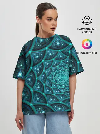 Женская футболка оверсайз / Асимметрия узор круги фигуры