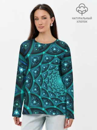 Лонгслив женский. Хлопок / Асимметрия узор круги фигуры