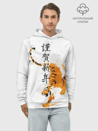 Худи мужской база хлопок / Китайский тигр