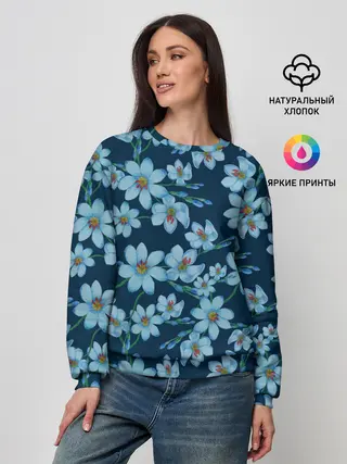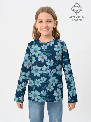 Лонгслив женский. Хлопок / Иксии не темно синем фоне