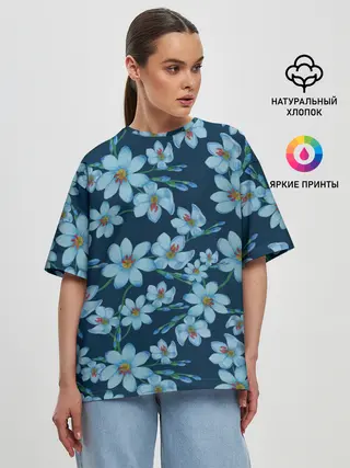 Женская футболка оверсайз / Иксии не темно синем фоне