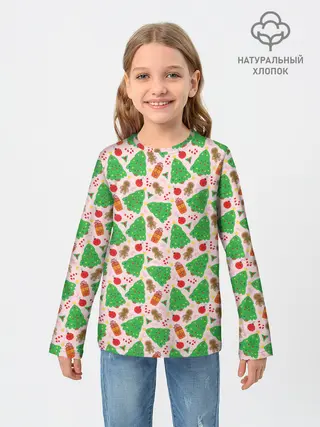 Лонгслив женский. Хлопок / Новогодние ёлки и подарки
