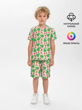Детская пижама с шортами / Новогодние ёлки и подарки