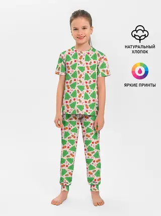 Детская пижама с брюками / Новогодние ёлки и подарки