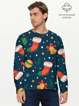 Мужской лонгслив базовый / Новогодний, рождественский узор