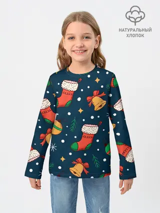 Детский лонгслив / Новогодний, рождественский узор