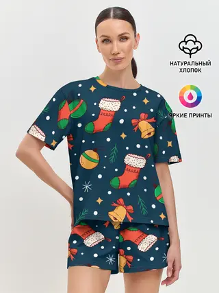 Женская пижама с шортами / Новогодний, рождественский узор