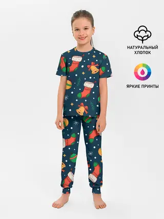 Детская пижама с брюками / Новогодний, рождественский узор