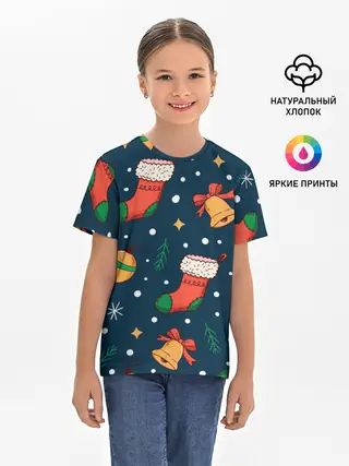 Детская базовая футболка / Новогодний, рождественский узор