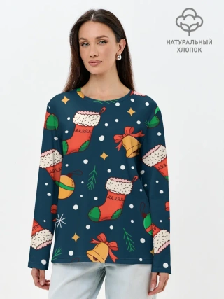 Лонгслив женский. Хлопок / Новогодний, рождественский узор