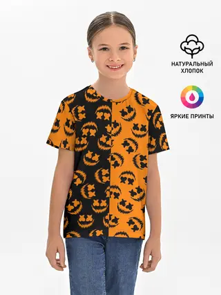 Детская базовая футболка / УЛЫБКА ТЫКВЫ / ХЕЛЛОУИН