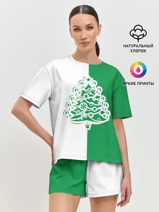 Женская пижама с шортами / Зелёная Ёлочка