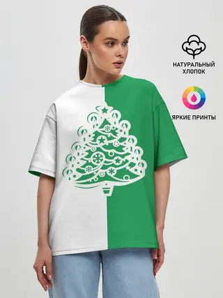 Женская футболка оверсайз / Зелёная Ёлочка
