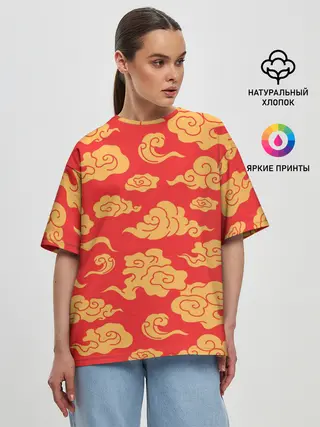 Женская футболка оверсайз / Западный узор облаков