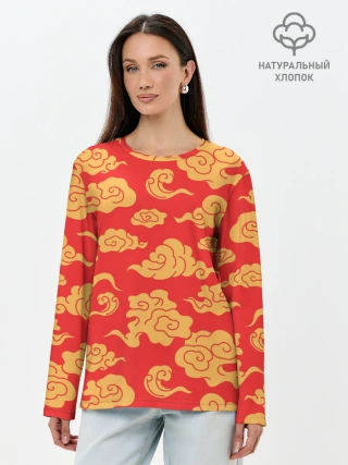 Лонгслив женский. Хлопок / Западный узор облаков