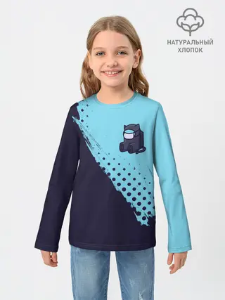 Детский лонгслив / AMONG US - Черный Котик