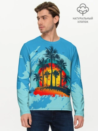 Мужской лонгслив базовый / Море. Пальмы. Песок