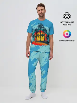 Мужская пижама с брюками / Море. Пальмы. Песок
