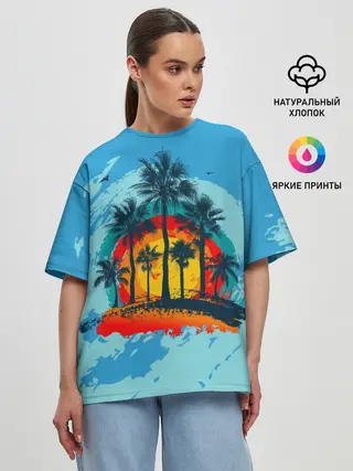 Женская футболка оверсайз / Море. Пальмы. Песок