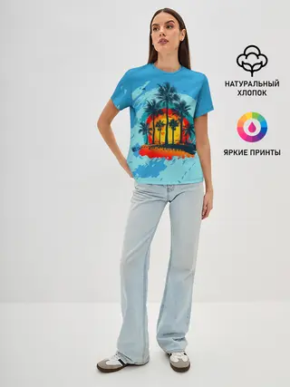 Женская базовая футболка / Море. Пальмы. Песок