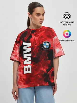 Женская футболка оверсайз / BMW FIRE