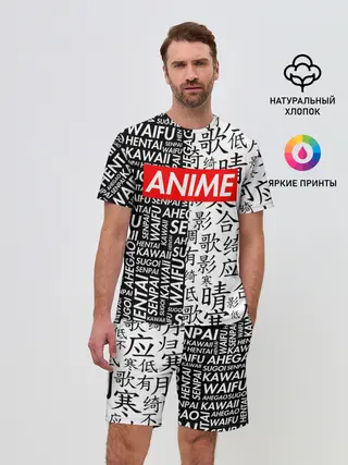 Мужская пижама с брюками / Anime black&white