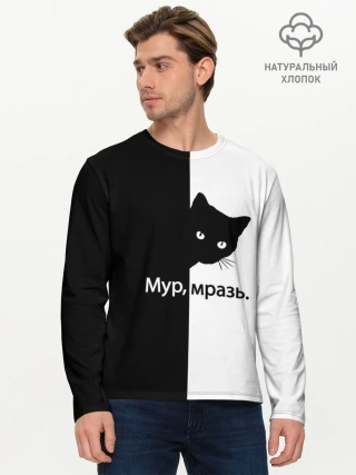 Мужской лонгслив базовый / Черный кот