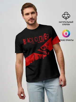Мужская базовая футболка / Чёрный клевер Аста красная полоса