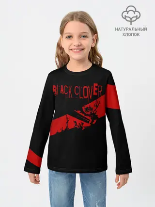 Детский лонгслив / Чёрный клевер Аста красная полоса