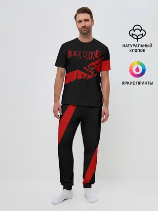 Мужская пижама с брюками / Чёрный клевер Аста красная полоса