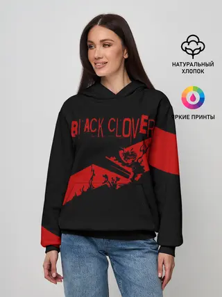 Женское худи / Чёрный клевер Аста красная полоса