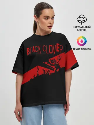 Женская футболка оверсайз / Чёрный клевер Аста красная полоса
