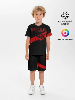 Детская пижама с шортами / Чёрный клевер Аста красная полоса