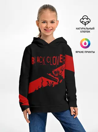 Детское худи / Чёрный клевер Аста красная полоса