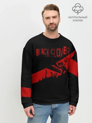 Мужской свитшот базовый / Чёрный клевер Аста красная полоса