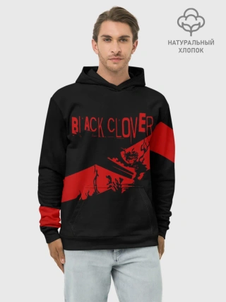Худи мужской база хлопок / Чёрный клевер Аста красная полоса