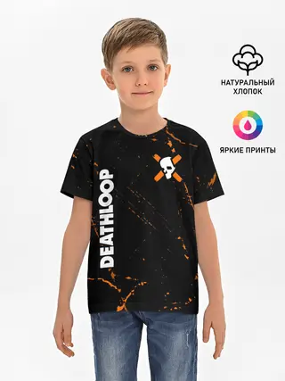 Детская базовая футболка / Deathloop - Skull - Grunge