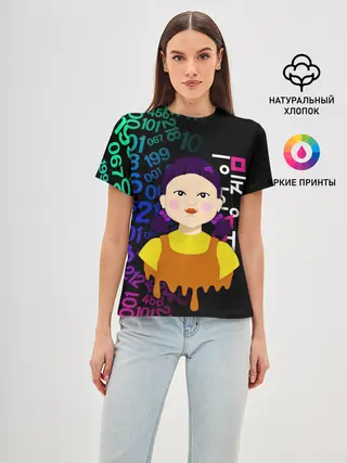 Женская футболка оверсайз / ИГРА В КАЛЬМАРА / SQUID GAME / КУКЛА / УЗОР