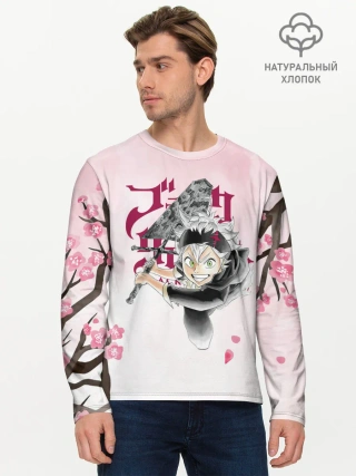 Мужской лонгслив базовый / Чёрный клевер сакура Аста