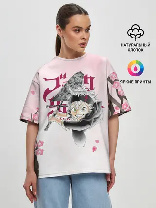 Женская футболка оверсайз / Чёрный клевер сакура Аста
