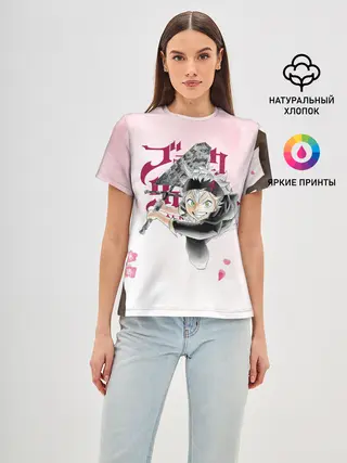 Женская базовая футболка / Чёрный клевер сакура Аста