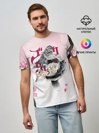Мужская базовая футболка / Чёрный клевер сакура Аста